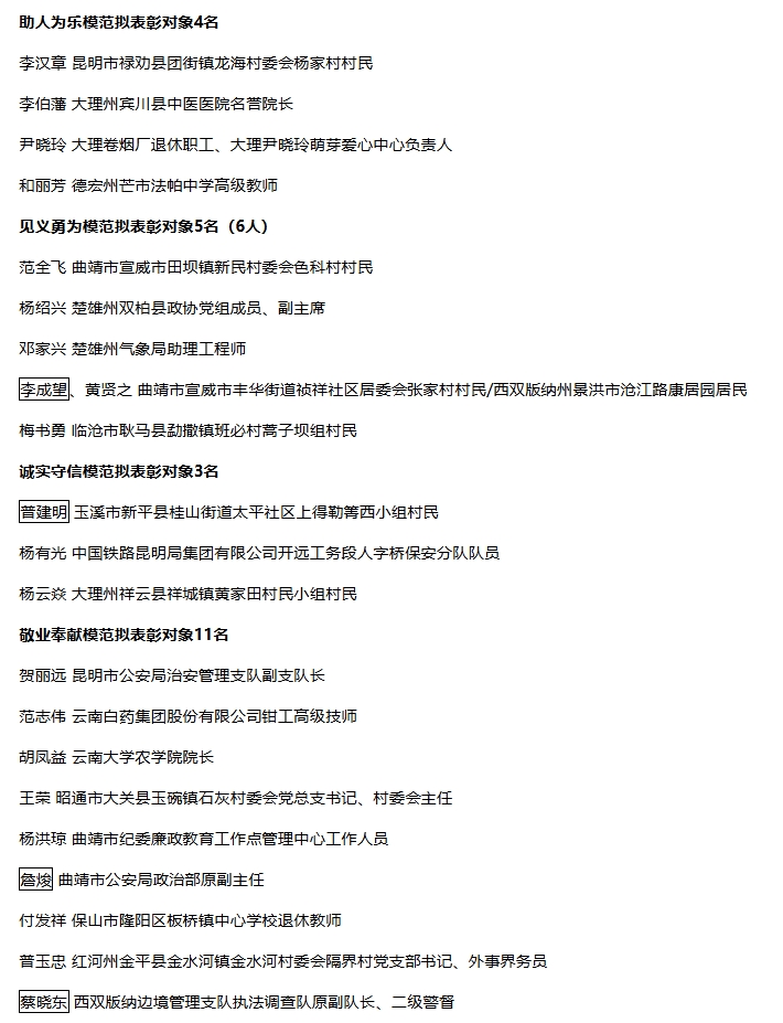 2.2023年云南省道德模范提名奖拟表彰对象名单