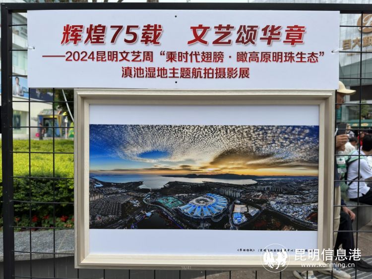 2024年,是中华人民共和国成立75周年华诞。为迎接这一盛事,昆明市文学艺术界联合会举办“辉煌75载 文艺颂华章——2024昆明文艺周”暨昆明市文联新时代文明实践文艺志愿服务活动。作为系列活动之一,昆明摄影家协会承办“乘时代翅膀 瞰高原明珠生态”滇池湿地主题航拍摄影展。
