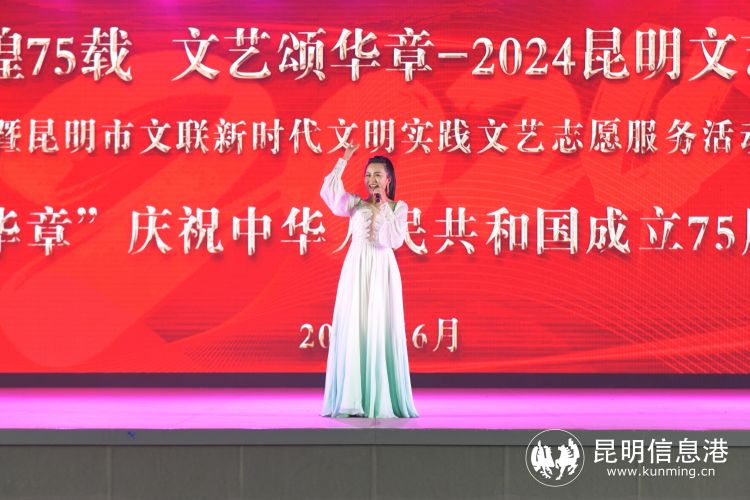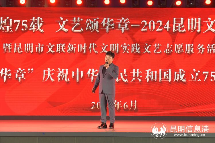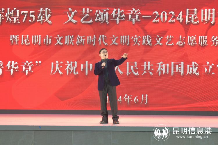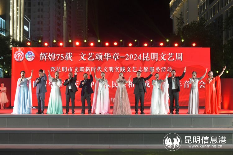 昆明信息港讯 记者王奕然 张玉 6月22日晚,“辉煌75载 文艺颂华章” 2024昆明文艺周“盛世谱华章”庆祝中华人民共和国成立75周年音乐会在南屏步行街广场举行,音乐艺术家们登台献唱多首经典歌曲,以饱满的爱国主义情怀歌颂伟大祖国。