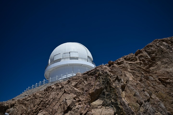这是在青海省海西蒙古族藏族自治州茫崖市冷湖镇赛什腾山拍摄的中国科学技术大学和中国科学院紫金山天文台联合研制的大视场光学成像望远镜——墨子巡天望远镜(2024年4月20日摄)。新华社记者 张龙 摄