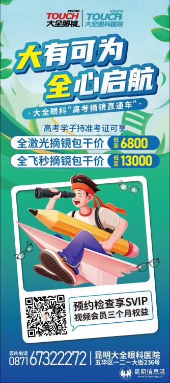 针对每年高考后出现的摘镜高峰,昆明大全眼科医院特别提醒广大高考考生及家长,为确保手术效果和安全,建议大家在高考结束后尽早预约进行手术。因为手术恢复需要一定时间,提前规划可以避免术后恢复期与特殊专业复查时间冲突。此外,考生和家长还有足够的时间了解手术相关知识,做好心理准备,更好地应对手术带来的变化。