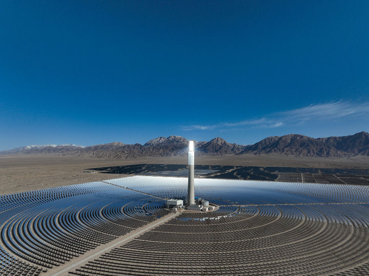 在青海省海西蒙古族藏族自治州德令哈市光伏(光热)产业园拍摄的光热电站(2024年4月23日摄,无人机照片)。新华社记者 张龙 摄