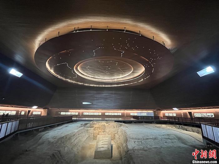 寓意“天圆地方”的帝陵遗址内,圆形穹顶正中间象征帝王的紫微星正对下方的隋炀帝墓室,50米左右见方的夯土以原状呈现在今天的人们面前。