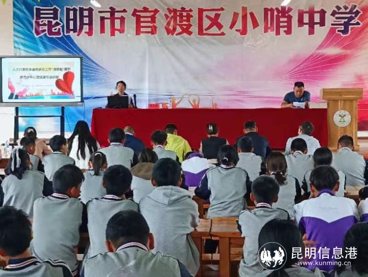 昆明信息港讯 记者李红鸾 6月26日上午,昆明的天空飘着毛毛细雨,如甘露般滋养小哨学子的心田,云南省远望文教发展中心受邀到昆明市官渡区小哨中学开展“人大代表联系服务群众工作‘清单制’履职暨青少年心理健康教育专题讲座”,为小哨中学初一、初二年级师生及相关单位干部职工120余人进行心理知识普及和青春演讲。