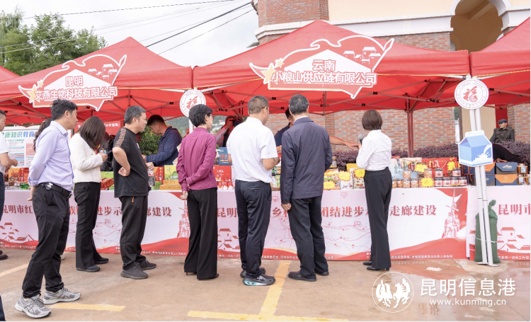 活动第二阶段,举办了红色乡村五县(区)红色文化展及寻甸县红色乡村农特产品展。“八十多年前,红军长征两次经过这里,在这片土地上播下了革命的火种,留下了丰富的遗址遗迹和感人肺腑的动人故事。”现场,各县(区)讲解员一一介绍了本县(区)的红色文化资源,带领嘉宾们感悟长征精神、体验时代巨变。杂粮、牛干巴、油炸鸡枞、炸马铃薯、有机苦荞茶……在寻甸县红色乡村农特产品展的现场,12家农特产品企业带来了50余种产品参加展销,还吸引了不少市民前来参观了解、驻足选购,现场氛围热烈。