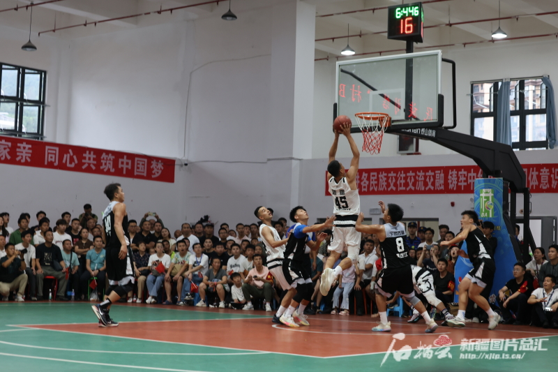 6月30日,新疆叶城队对战贵州凯里队,开赛不久,新疆叶城队队长安尼卡尔·艾尔肯拿下一个篮板球。陈文军 摄