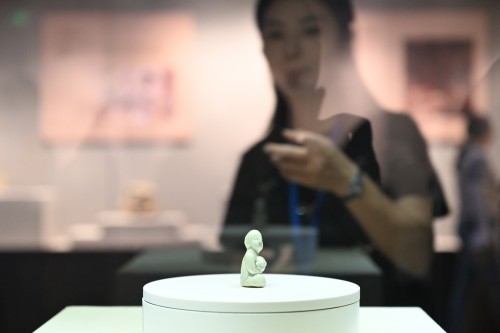 (柳孜遗址出土的国家一级文物——北宋景德镇窑影青釉抱鞠童俑,它在淮北市博物馆里)