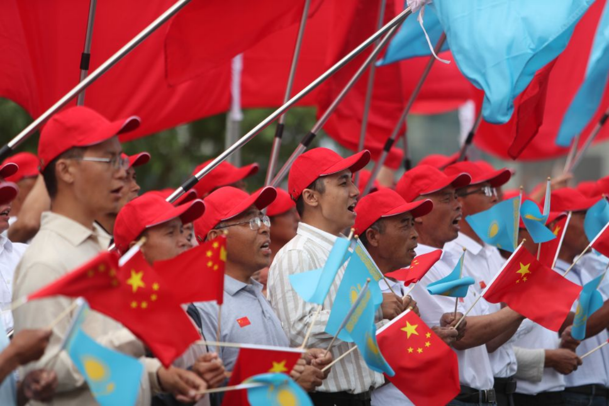 十余名哈萨克斯坦少年儿童用中文演唱《歌唱祖国》,热烈欢迎习近平主席到访。