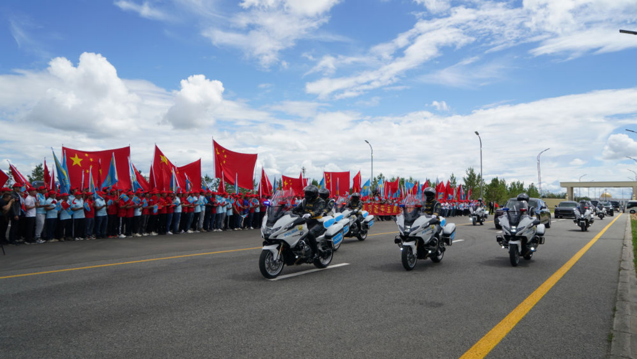 习近平乘车从机场赴下榻饭店途中,当地中资企业代表等候在道路两旁,挥舞中哈两国国旗,高举“热烈欢迎习近平主席访问哈萨克斯坦”等红色横幅,热烈欢迎习近平主席到访。