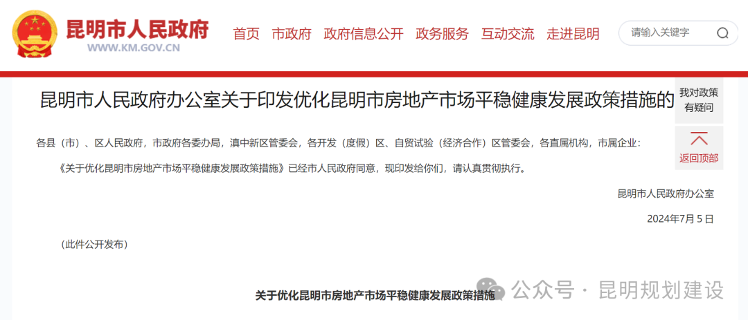 今日,昆明市人民政府办公室印发了《关于优化昆明市房地产市场平稳健康发展政策措施的通知》,新规包含优化供给结构、加强项目规划服务、提升要素保障质效、推动存量住房去化等5个方面,共25条主要措施。