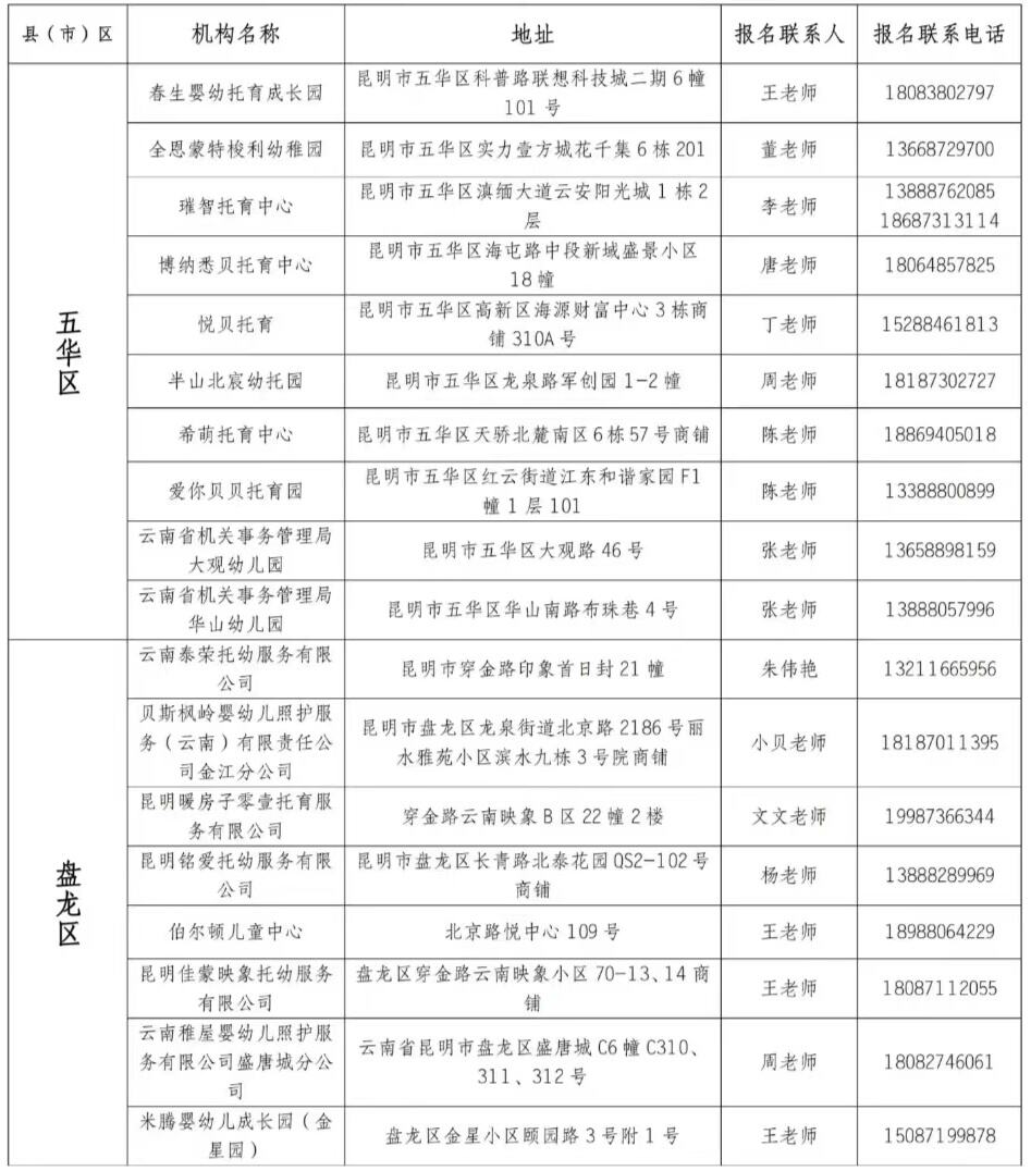 根据《中共昆明市委 昆明市人民政府印发<关于优化生育政策促进人口长期均衡发展的实施方案>的通知》(昆发〔2023〕20号)和《昆明市人民政府办公室 关于促进3岁以下婴幼儿照护服务发展的实施意见》(昆政办〔2020〕71号)等文件要求,为促进昆明市婴幼儿照护服务规范化发展,积极推进托育机构备案工作,加强社会监督管理,便于家长就近选择,现将95家场地设施、环境卫生、人员配备、安全管理等各项指标符合要求,通过审核,备案合格的昆明市2024年度托育机构“白名单”(详见附件)予以公布。