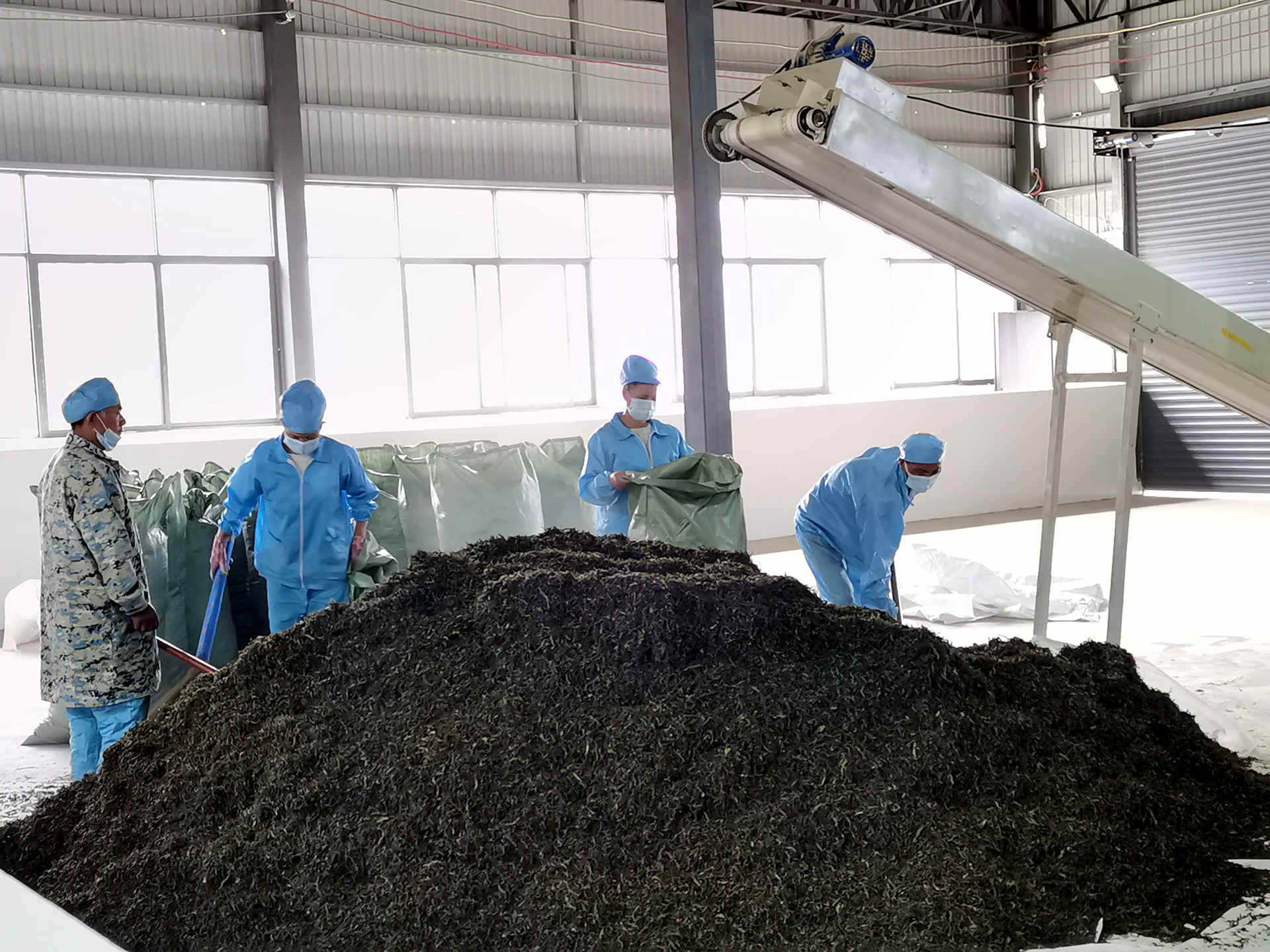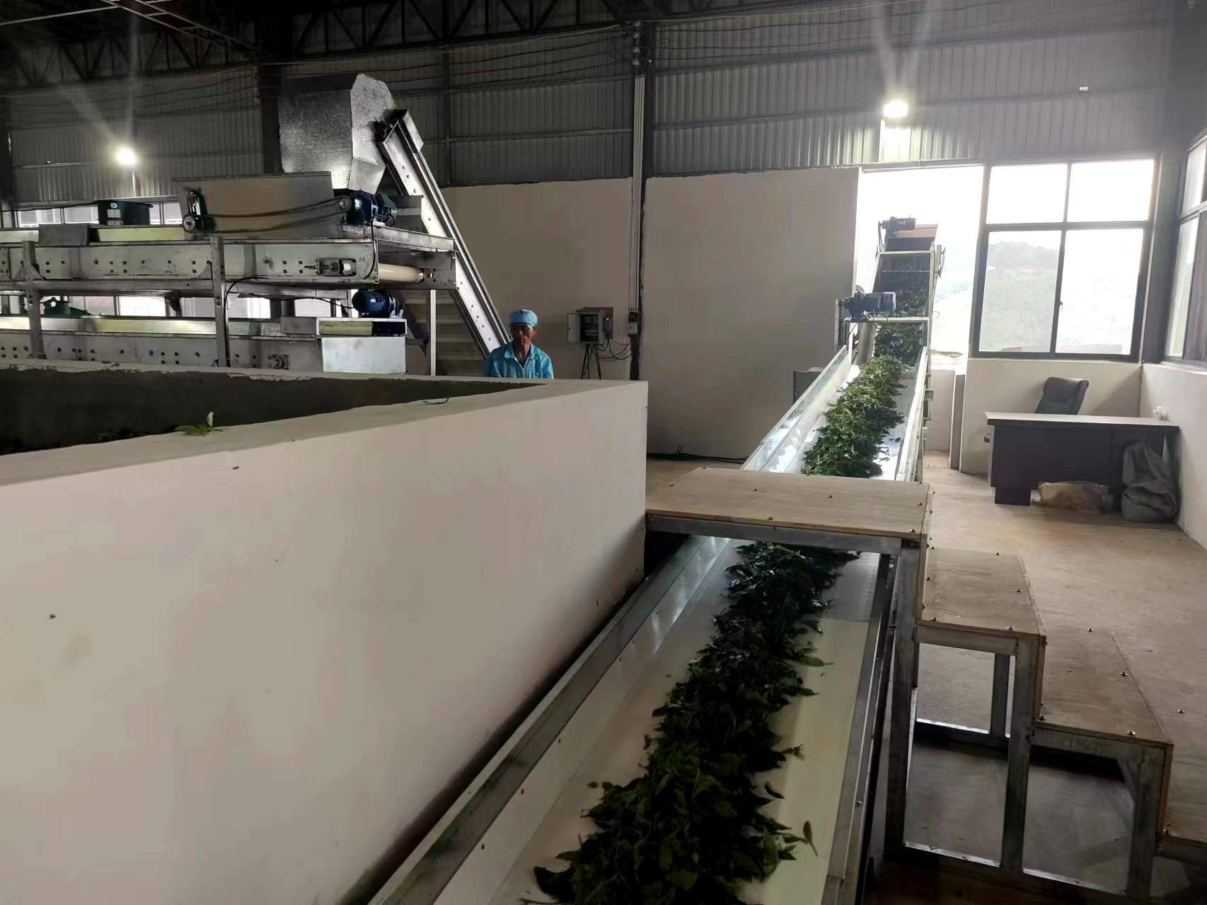 在附近的茶叶加工厂里,茶农们正在依次排队、称重,过秤后的茶叶被均匀地铺晾在工作台上。一旁的传送带、杀青机、捻揉机、烘干机都静静地休息着——它们的高光时刻将在晚上八九点钟来临。