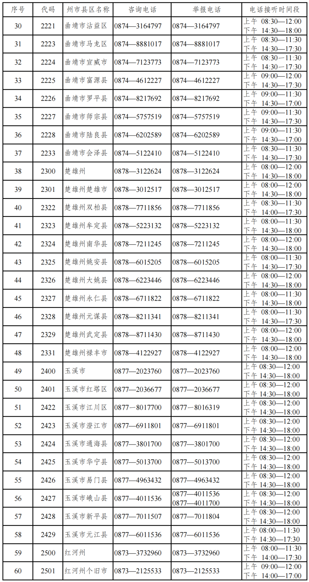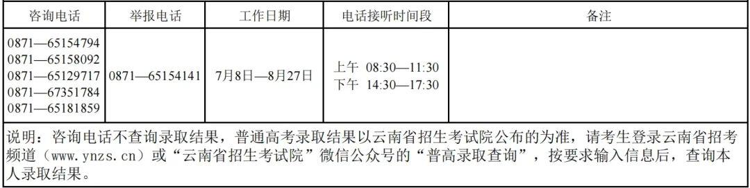 云南省2024年普高招生录取咨询及违规举报联系方式公布