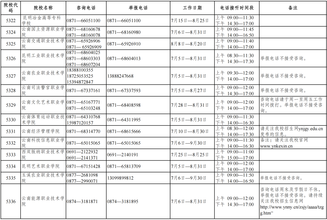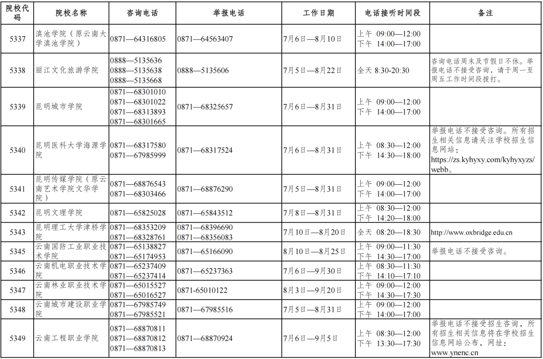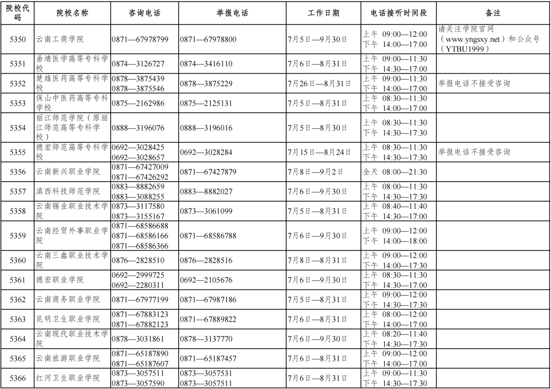 昆明信息港讯 日前,云南省招生考试院公布2024年普通高校招生录取期间、咨询及违规举报联系方式,详情如下: