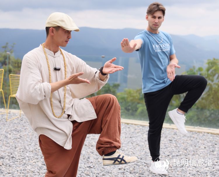 诺娃和同样来自俄罗斯的BAKIN DENIS,随后都跟随谢无忌练起了太极拳。他们请同伴帮忙把这些拍成照片和视频,练习完后就赶紧去翻看,甚是喜欢。
