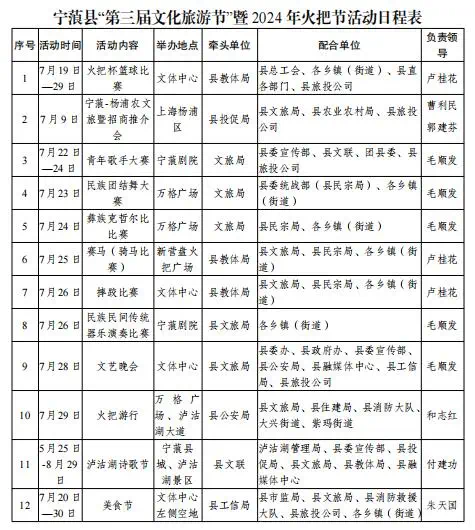 亮点活动:送旧火、取火迎火、开幕式民族歌舞展演、牛王争霸赛、“激情火把夜万人大三弦”狂欢、牛王争霸赛、火把节主题短视频大赛等。