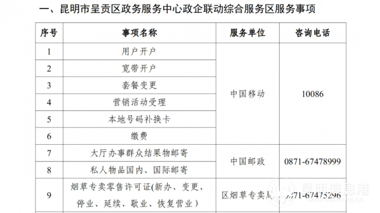 昆明市呈贡区政务服务中心政企联动综合服务区已经正式运行,现将该综合服务区目前提供的服务事项以及惠企政策事项公布如下,欢迎大家前来办理。