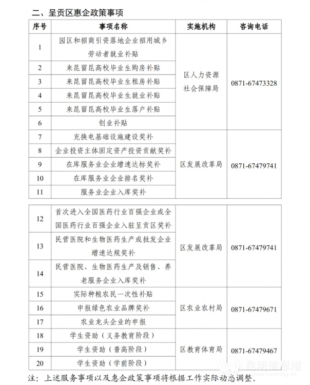 呈贡区政企联动综合服务区服务事项及呈贡区惠企政策事项的温馨提示