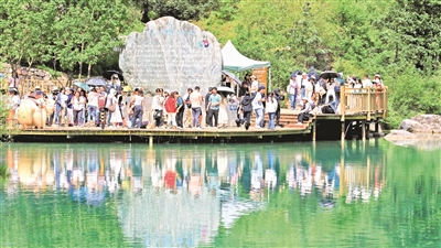 近日,蓝月谷景区游人如织。(本报记者 吴星 摄)