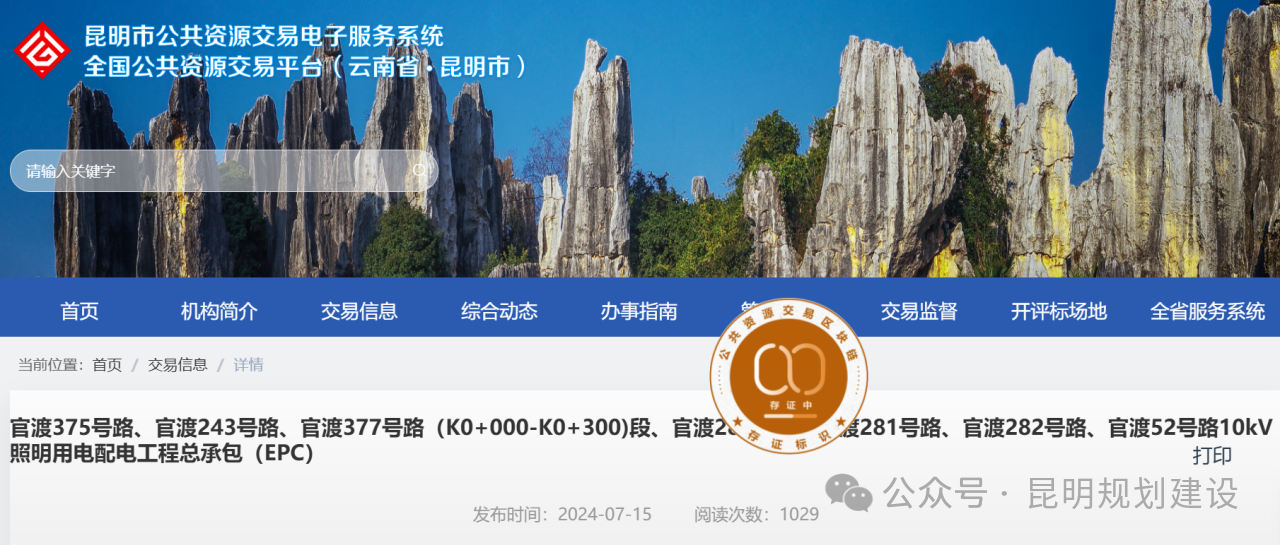 7月15日,昆明市公共资源交易平台发布“官渡375号路、官渡243号路、官渡377号路(K0+000—K0+300)段、官渡280号路、官渡281号路、官渡282号路、官渡52号路10kV照明用电配电工程总承包(EPC)”项目拟招标计划表,这7条道路中有4条为城市次干路,另外3条是城市支路。