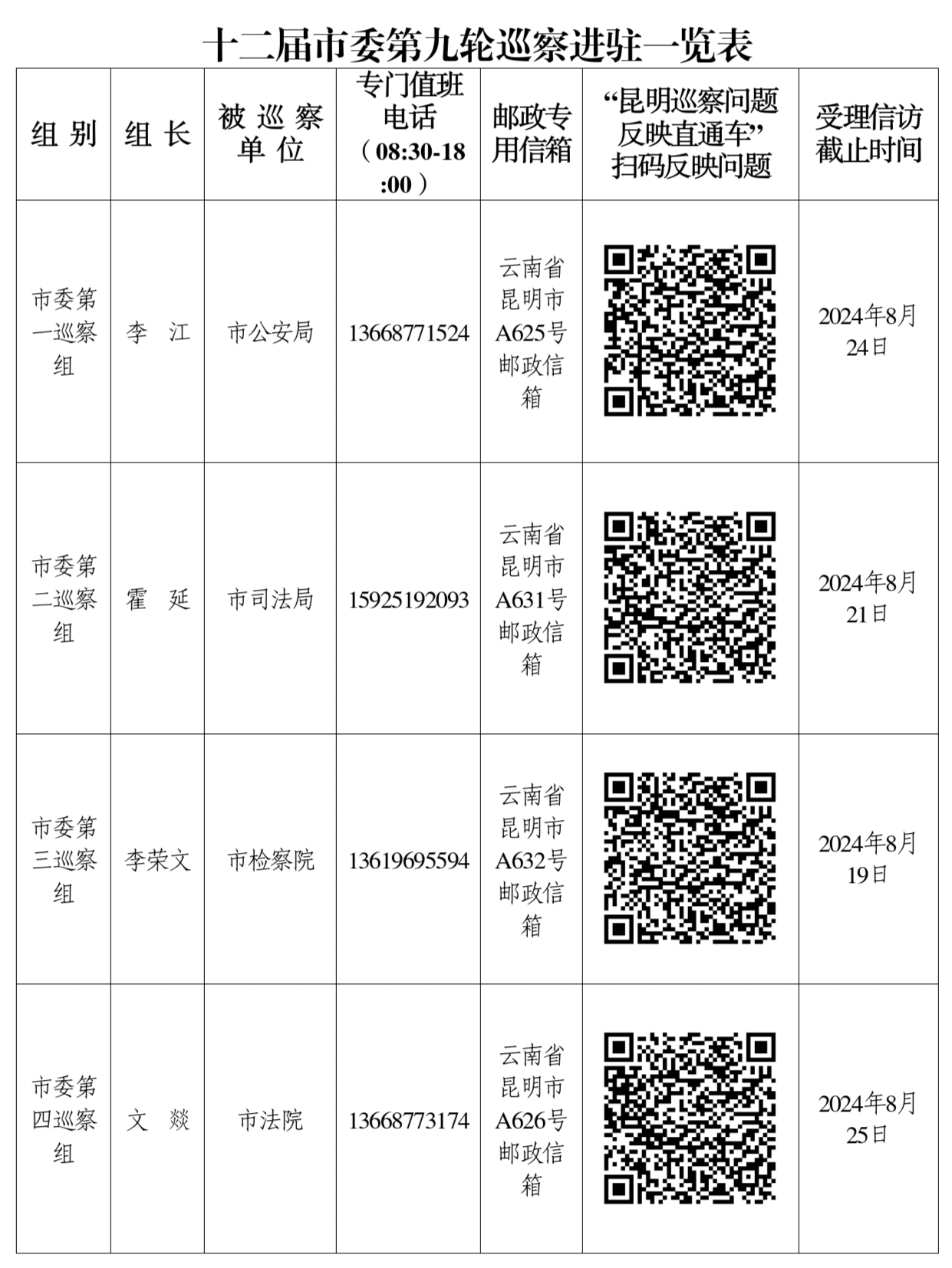 近日,十二届昆明市委第九轮巡察完成进驻。10个巡察组采取常规巡察、提级巡察、联动巡察和统合巡察等方式,分别对13个单位(部门)、2个街道、10个社区党组织开展“政治体检”,十二届市委第九轮巡察工作全面展开。