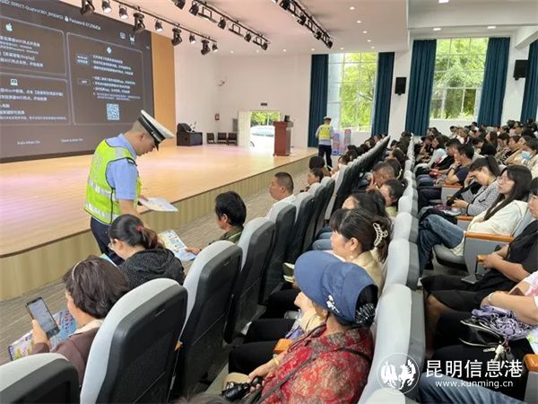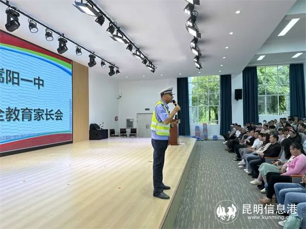 昆明信息港讯 记者合宇聪 为进一步增强学生遵守交通法规的自觉性,培养良好的交通安全习惯,提升学生假期交通安全意识。近日,嵩明县公安局交警大队走进辖区嵩阳一中,为近1500名学生家长开展交通安全宣传教育讲座,希望同学们享受假期的同时别忽视交通安全。