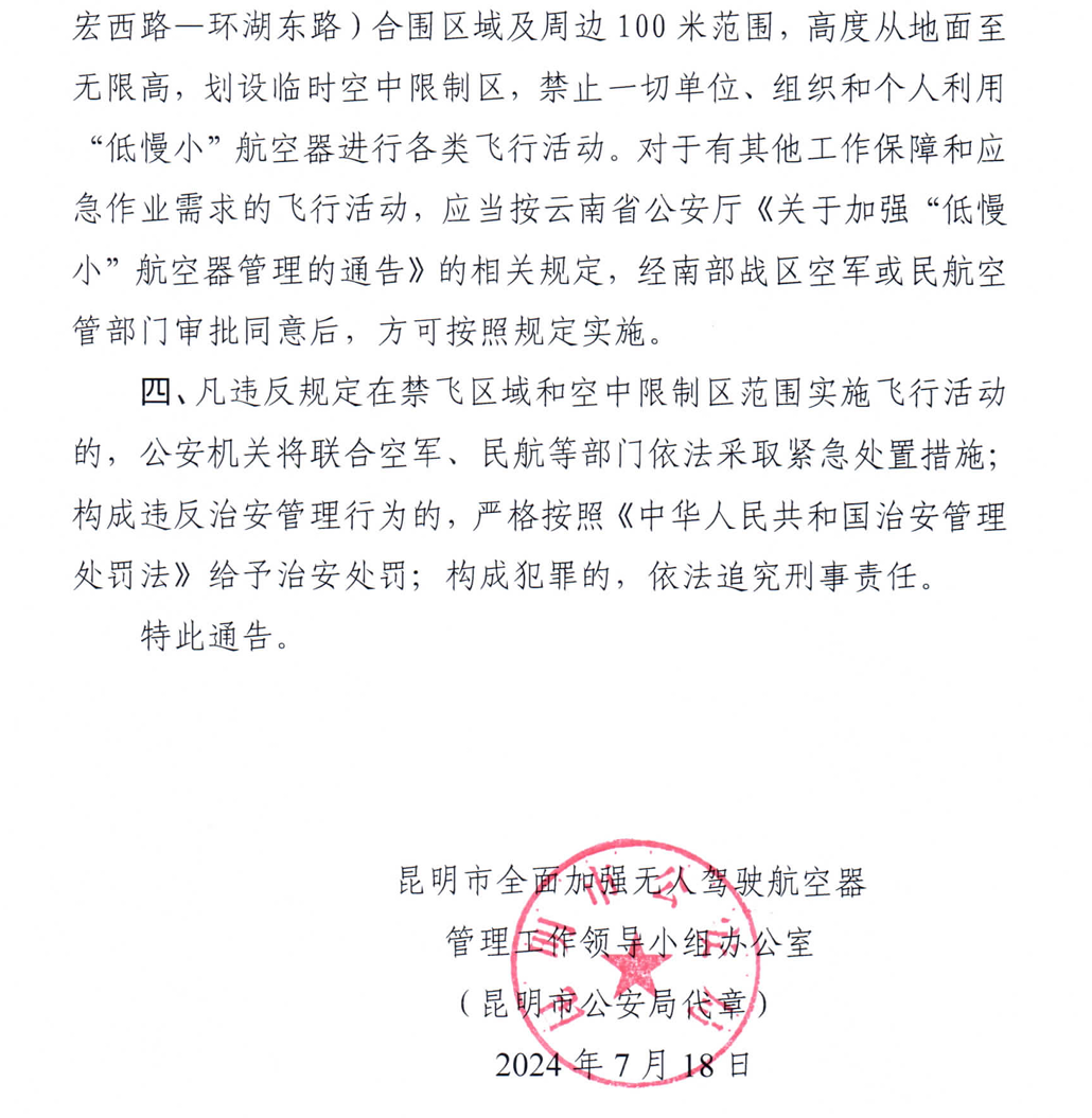 注意!7月23日至28日,昆明这些区域禁飞无人机