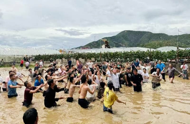 本届葡萄文化旅游节除了主会场有好看、好吃的外,组委会还把主会场周边的4条景观长廊装点一新,设立“缤纷夏日”“岁稔年丰”“生态农特展示一条街”“春华秋实”,并在长廊中设置“露天KTV”“水果蹲”“国粹汉字大比拼”“大胃王之吃葡萄比赛”“广场舞大赛”“摄影大赛”等互动活动,只要按活动规则完成任务,即可获得精美奖品一份。当天下午的徒手“浑水摸鱼”“徒手捉鸭”活动吸引了大量附近村民及游客共同参与,大家纷纷跳到水塘中摸鱼抓鸭,抓到的“战利品”免费带走,参与者们脸上洋溢着丰收的喜悦,围观的群众也看得乐呵呵。本次葡萄节主活动日期间,还有优惠福利大放送,组委会与战略合作伙伴“中通快递”“圆通快递”联合为广大游客免快递费冷链寄送葡萄。今年禄脿葡萄节开幕系列活动将比往年的2天再增加1天,持续至7月22日。