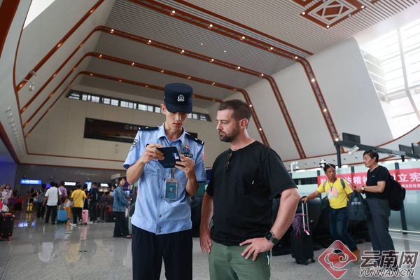 7月20日,磨憨铁路口岸迎来首位144小时过境免签旅客——美国籍旅客BENJAMIN MICHAEL。