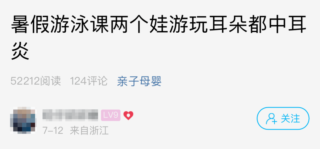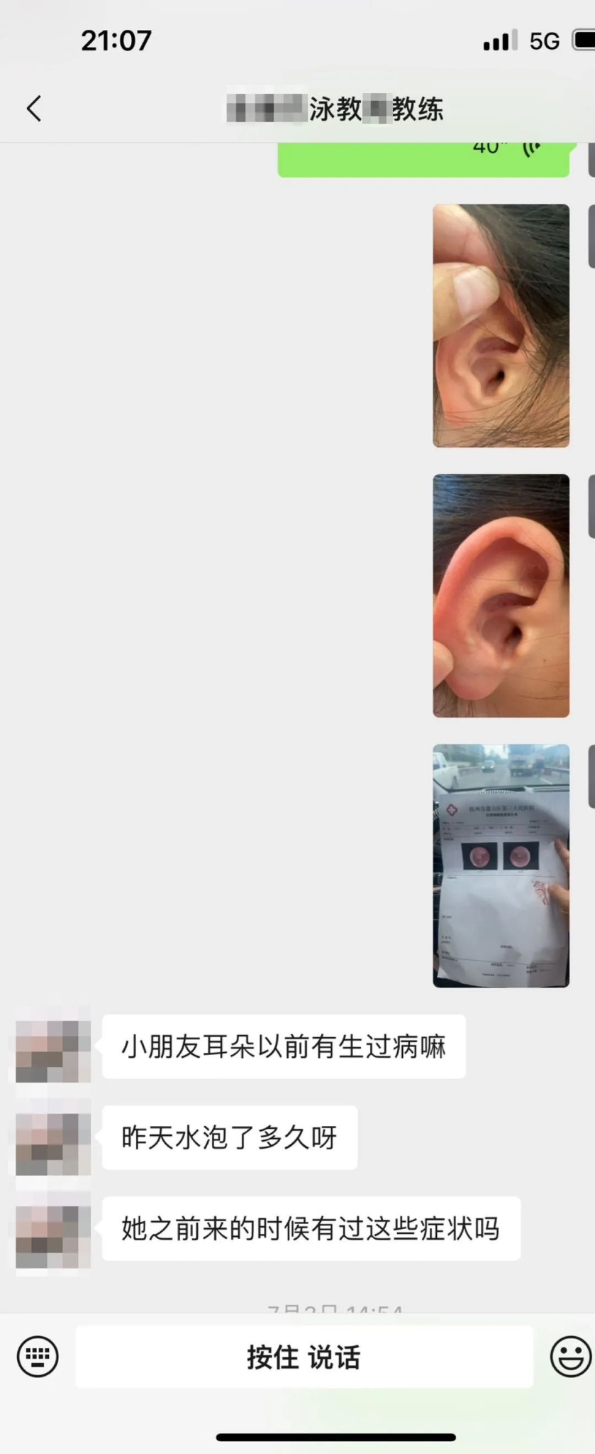 近日,杭州萧山一家长在本地论坛发帖,她给两个娃报了暑假游泳班,第一次体验课回来,女儿就耳朵内膜发炎,医生说是游泳引起的,暂时不能游了。