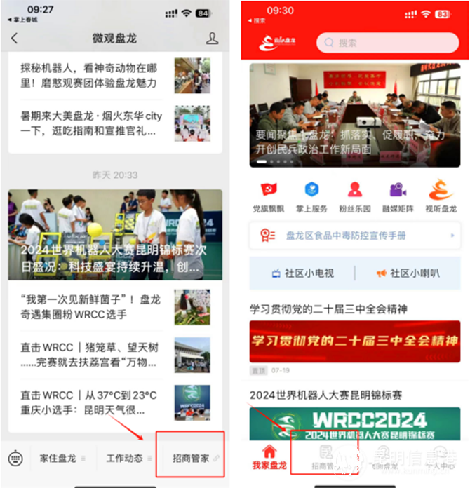 用户可以在“微观盘龙”微信公众号或“云融盘龙”App首页,点击“招商管家”菜单,进入“盘龙产业招商小管家”楼宇综合服务平台体验。平台上线后,将应用到盘龙区招商引资和楼宇服务的各个场景之中。对于招商专员,平台是一个移动招商工具,与以往单一、平面展示项目信息的文本不同,招商专员可以直接使用平台推介盘龙辖区重要楼宇、地块、商圈的招商信息,可视化展示让项目更具吸引力。