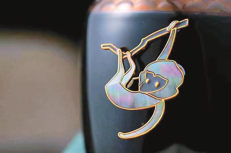 “森林里的酷跑”胸针原型为西黑冠长臂猿。为了完美展现其魅力,赵益选用了海水贝母材料。这种材料在不同光线下呈现出的五彩斑斓效果,恰能体现西黑冠长臂猿毛色的多样性,同时凸显设计的精致。