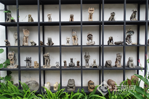此次展览还展出了不少从民间收集的屋顶上的传统样式的瓦猫,这些瓦猫造型千姿百态、带有岁月的痕迹,吸引来来往往的游客驻足观看,人们在传统瓦猫艺术装置中拍照,也与大腹便便的“瓦猫大人”合影,还可以在院里体验瓦猫制作。