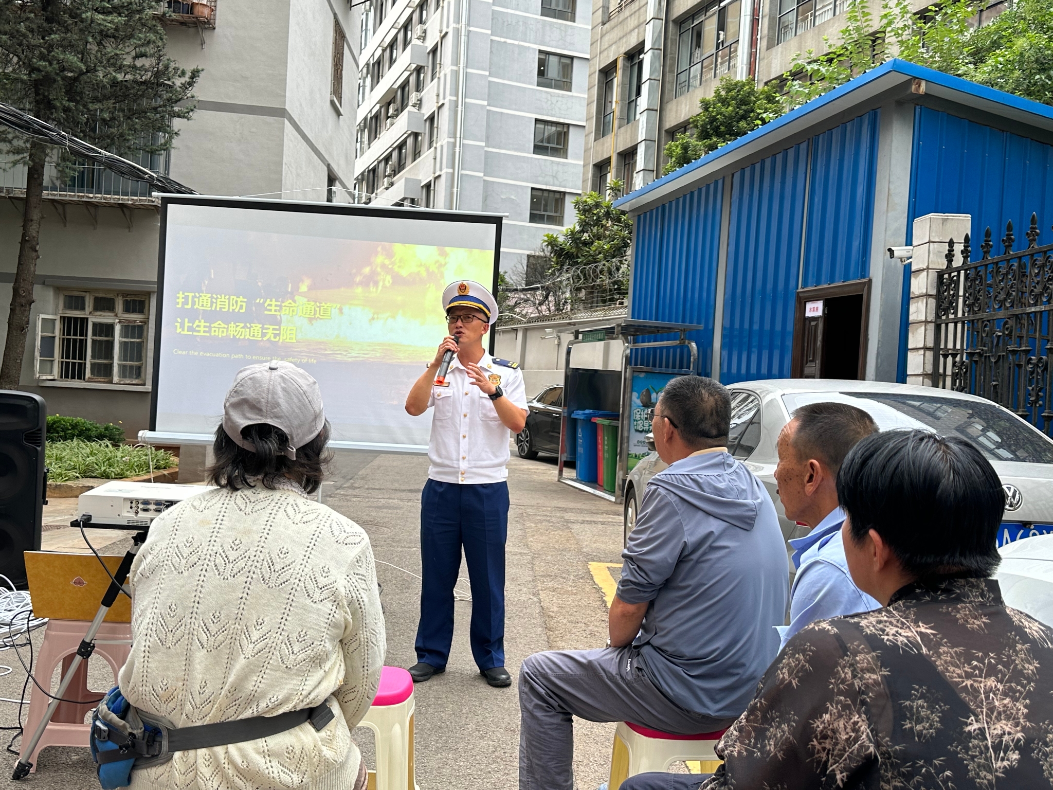 7月20日19时,盘龙区城中村、老旧小区消防安全“院坝课堂”走进东风东路106号省发改委老生活区,为居民们带去一场别开生面的消防安全知识盛宴。