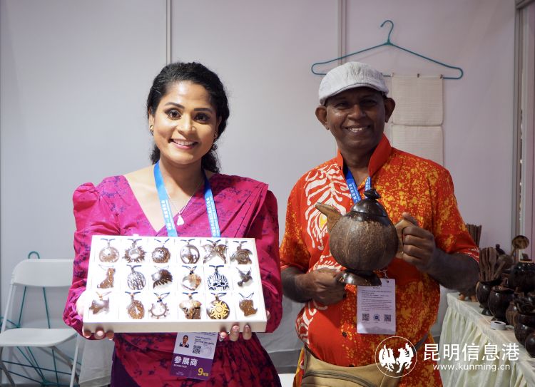 热情的斯里兰卡参展商展示椰壳工艺品。记者石嘉欣/摄