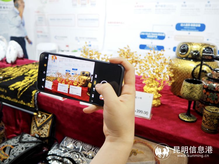 一位顾客正在用手机拍摄缅甸展品。记者石嘉欣/摄