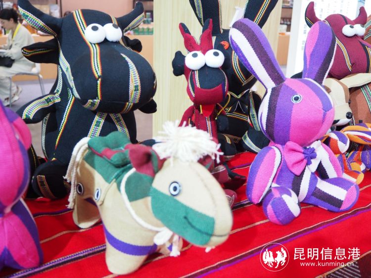 佤族非遗织锦工艺做成的玩偶。记者石嘉欣/摄