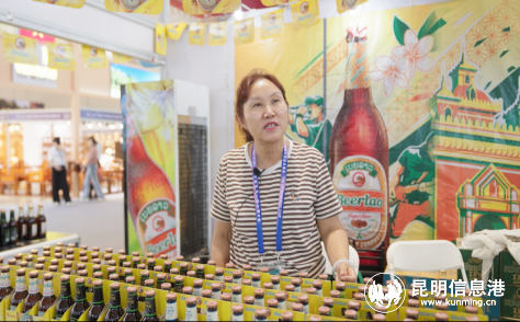 老挝啤酒西双版纳泰源进出口贸易有限责任公司负责人腾海琳。记者李涛谢星宸/摄