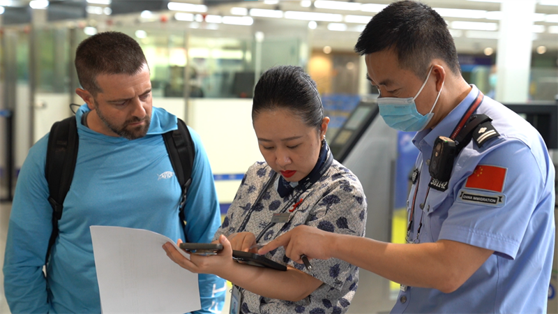 云南省144小时过境免签政策停留范围扩大后的首位入境旅客。