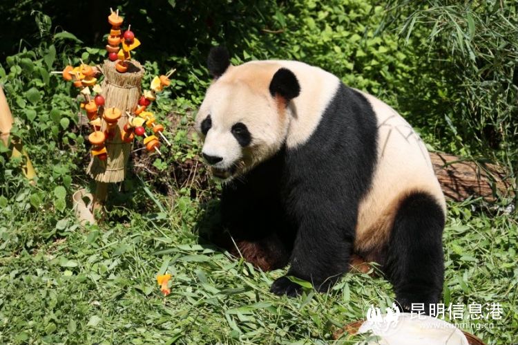 昆明信息港讯 记者段佳琪 7月26日,云南野生动物园大熊猫“毛竹”迎来10岁生日,动物园为其举办了特别的生日会,庆祝它踏入“熊生”的第一个十年,众多“猫粉”齐聚一堂为其庆生。
