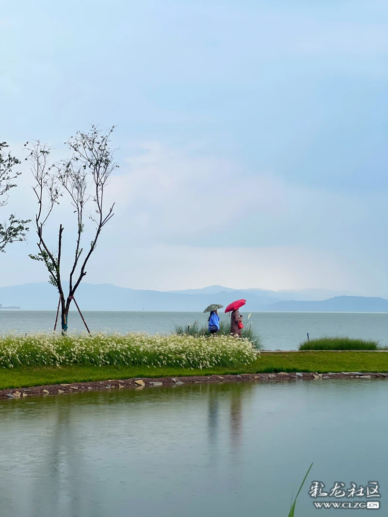 我们从村里去往滇池的路上,下起了蒙蒙细雨,烟雨里的滇池,梦幻迷茫,以疏离的景致示人,多少有点“犹抱琵琶半遮面”娇羞感。
