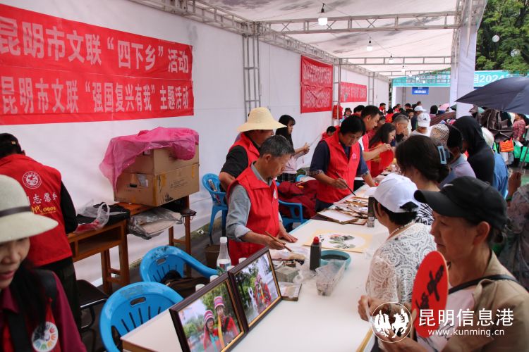 昆明信息港讯 记者甘凌菲 7月30日,昆明市2024年文化科技卫生法律“四下乡”活动在石林县鹿阜街道双龙广场举行,昆明市文联积极响应参与,组织了10余名书法家、美术家、摄影家共同前往,用写扇面、送字画、免费拍摄合影等惠民举措,打通文艺服务基层群众的“最后一公里”,把精彩的文艺作品送到了群众家门口。