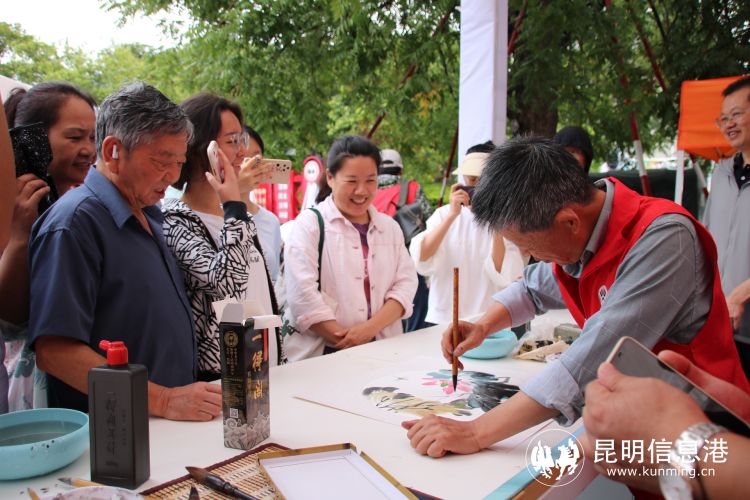“现场最大的特点就是群众们的参与度都很高,大家都会主动请我们的书法家、美术家们帮忙创作他们指定的内容,也会和我们有个艺术探讨,分享他们的见解。这是群众艺术审美提升的表现,在丰富群众精神文化生活的同时,对我们艺术家提升自己的艺术创作水平也非常有帮助。”昆明美术家协会主席包朝阳说。