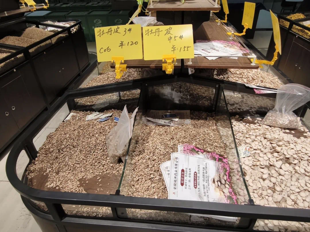 “白术37元/公斤,白芍24元/公斤……”走进另一位采购商老刘的店铺,映入眼帘的是门口写着的价格表。“这是去年的价格。”老刘摇了摇头,“两个星期前,白术还是卖150元、160元一公斤,现在已经涨到每公斤180元、190元。”
