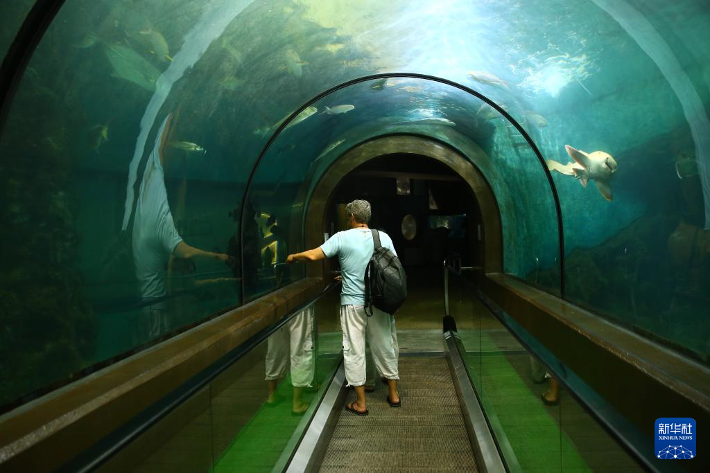 7月23日,游客参观泰国普吉海洋生物中心内设的水族馆。新华社记者 孙玮彤 摄