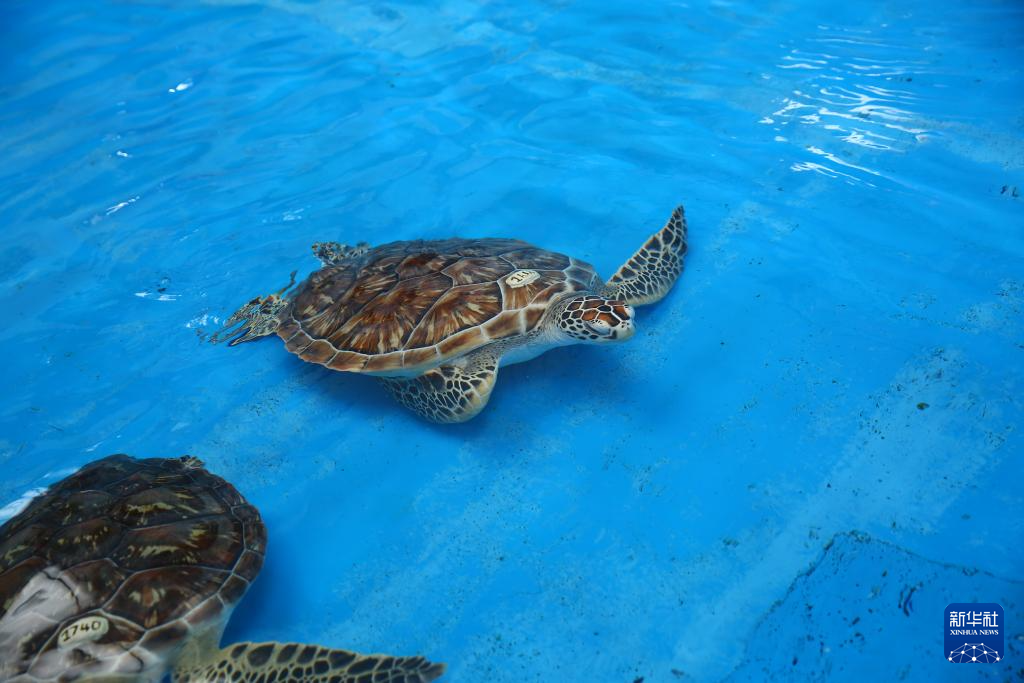 这是7月23日在泰国普吉海洋生物中心拍摄的被救助的海龟。新华社记者 孙玮彤 摄