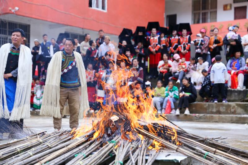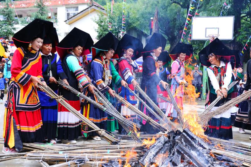 火把节是彝族重要的传统节日之一。当天早晨,村民们不约而同地准备好火把,来到村委会篮球场,在传统祭祀仪式中点燃各自的火把,共同祈愿国泰民安,安居乐业,五谷丰登。