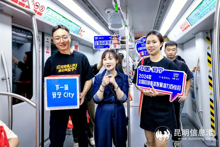 昆明信息港讯 记者杨雁 8月3日,一场别开生面的城市品牌形象宣传活动——安宁暑期文旅推介暨网络文化节在昆明地铁5号线启幕。此次活动以“下一站·安宁 City” 为主题,通过地铁专列、非遗展示、文艺快闪、城市推介、好礼派发等一系列趣味环节,为广大市民及游客带来了一次沉浸式的文化体验之旅。