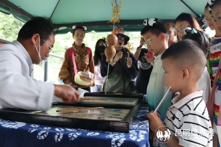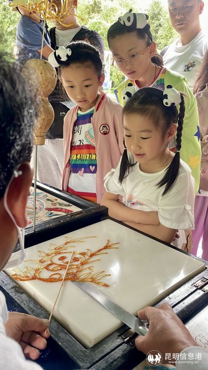 “毛竹”和“珍多”是云南唯二的两只大熊猫,哥哥“毛竹”性格温顺,弟弟“珍多”是个“吃货”。现场,科普导师给大家介绍了它们的故事和生活环境,并通过大熊猫的粪便和食物,为游客们详细科普了大熊猫的知识。值得一提的是,活动特别邀请了糖画非遗传承人为游客和“猫粉”带来一场糖画之旅。老师舀起一勺糖浆,以勺为笔,一气呵成画出了一只只栩栩如生的熊猫糖画。围在操作台边的大朋友小朋友,还有外国友人都看得心痒难耐,各个都迫不及待想尝一尝。此外,现场参与生日会的游客还能领取大熊猫10周岁纪念章。