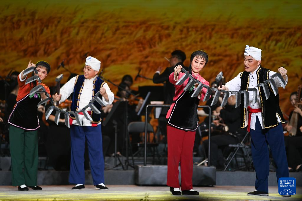 7月30日,演员表演眉户《十二把镰刀》。